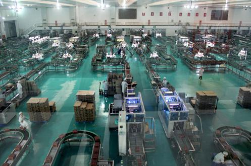 工藝順序:自動裝盒—三維包裝—貼標噴碼--自動開箱--自動裝箱--自動折蓋封箱--自動打包扎帶—收集轉運